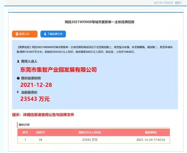 12月28日,东城街道桑园社区第三工业园新型产业类更新单元(下简称“桑园更新单元”),由深圳市中集产城发展集团有限公司旗下的东莞市集智产业园发展有限公司以2.35亿元成功摘牌。该单元面积231亩,是东莞中心城区首宗单一主体挂牌招商的改造项目,拟建设新型数字产业基地。
