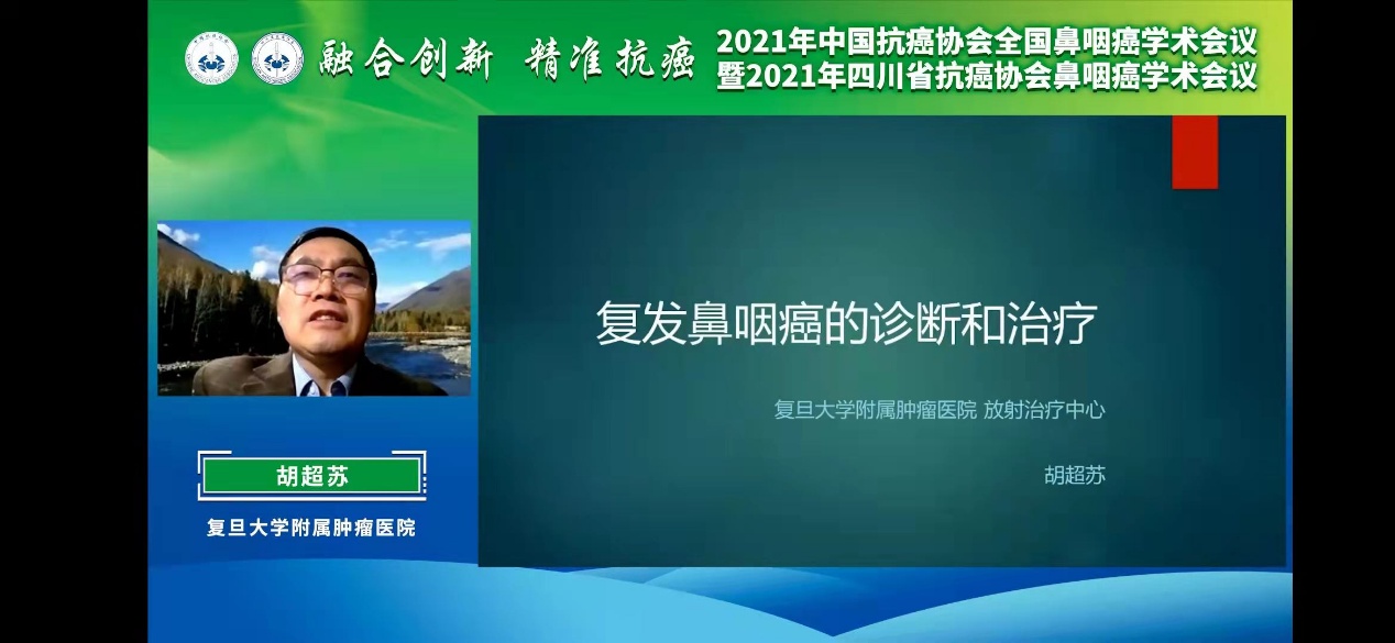 复旦大学附属肿瘤医院胡超苏教授给大家分享了《复发鼻咽癌的诊断和治疗》。胡教授重点从诊断复发鼻咽癌的依据、分期及临床特征等方面介绍,提出了目前复发鼻咽癌的诊治现状及困境,分享了复发鼻咽癌的早期诊断策略,血EBV DNA在复发鼻咽癌的诊断中重要意义,影像学在诊断过程中的弊端及诊断难点,并从多学科综合治疗等方面详细阐述复发鼻咽癌的治疗策略及不同治疗方法的比较。由电子科技大学附属肿瘤医院四川省肿瘤医院王卫东教授主持。