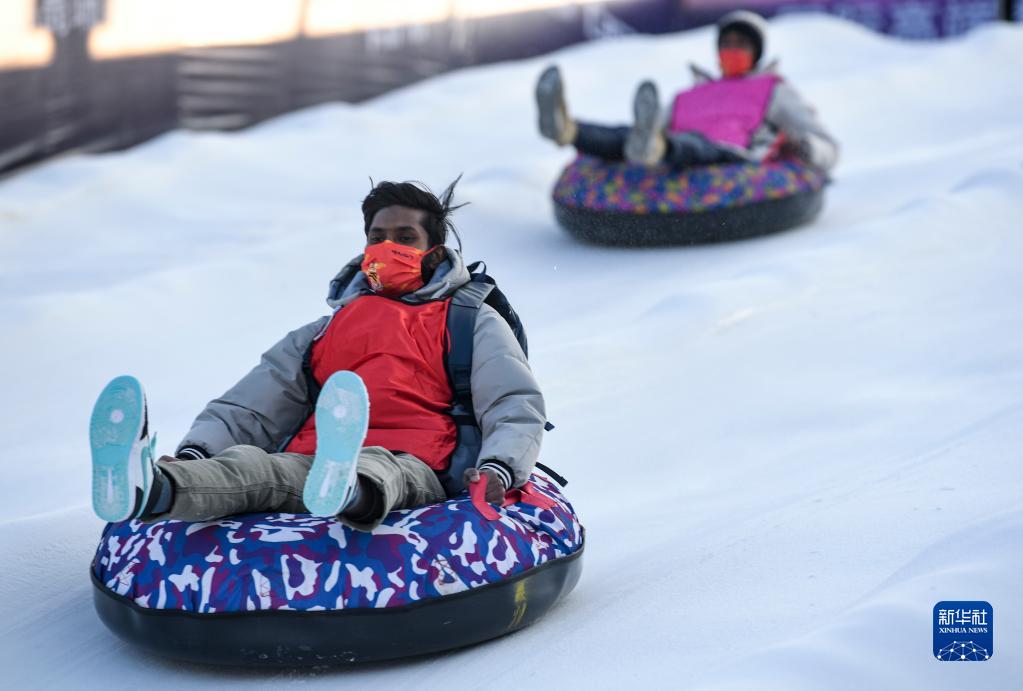 当日,宁夏医科大学的27名留学生在老师的陪同下,来到银川市贺兰县稻渔空间体验冰上爬犁、冰上滑车、雪地跑和雪圈等项目,感受中国浓厚的冰雪氛围,共同迎接北京冬奥会的到来。新华社记者 冯开华 摄