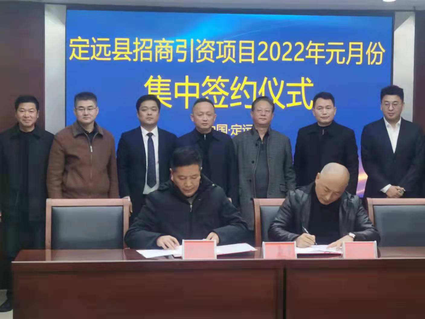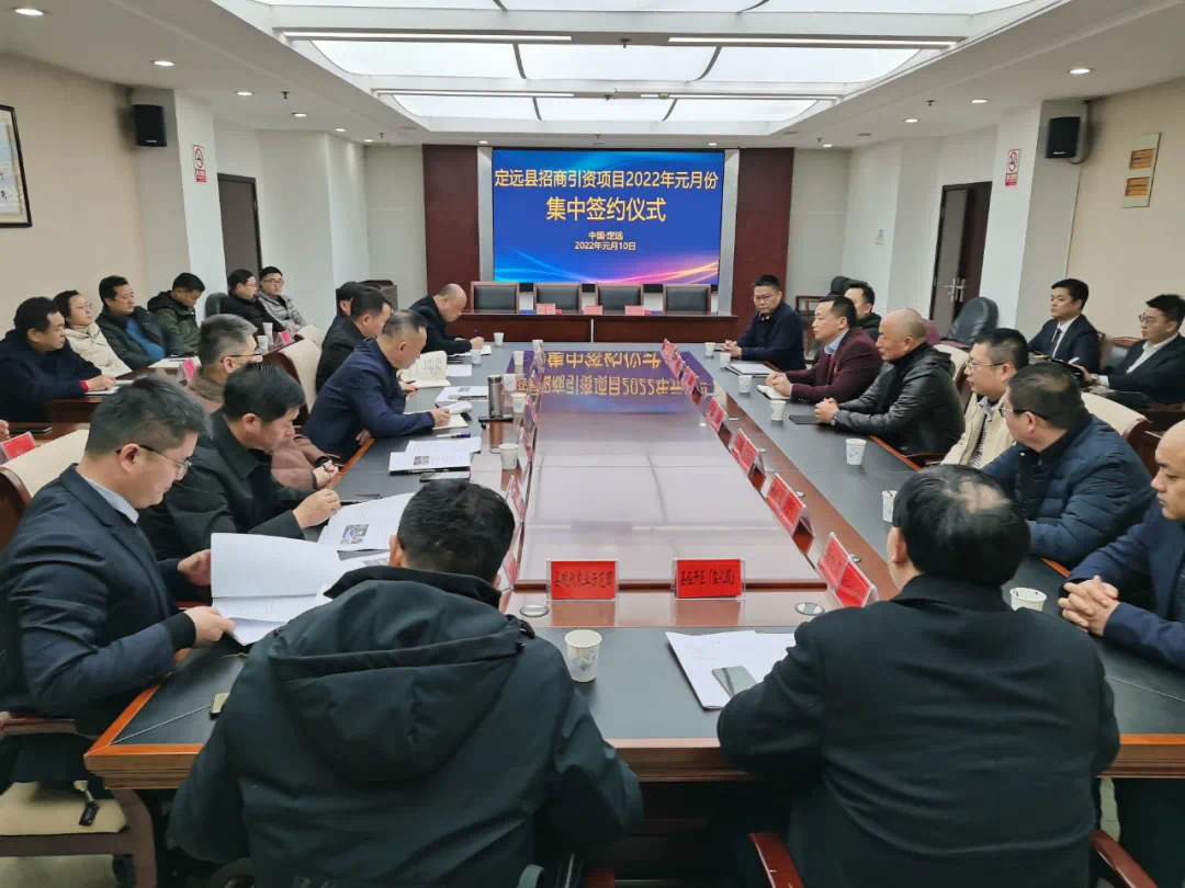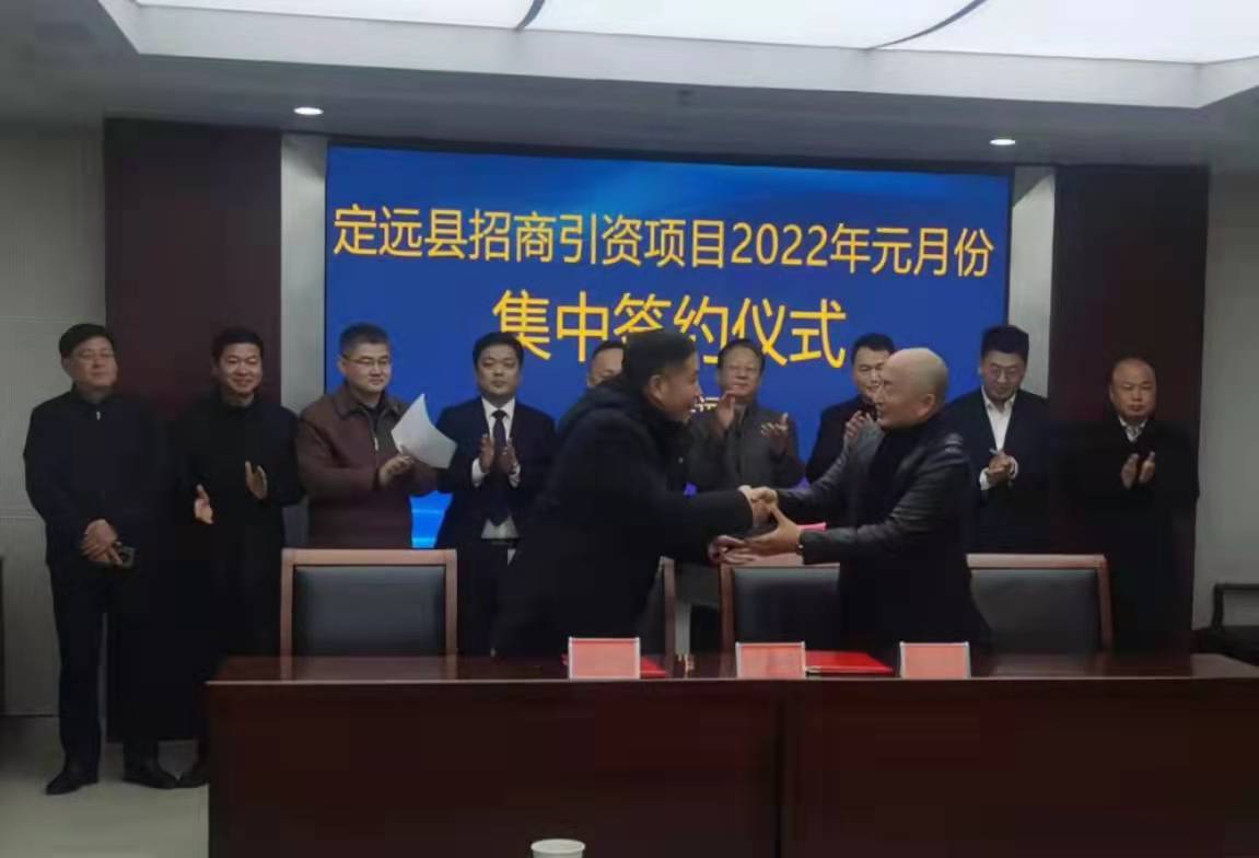 1月10日,定远县举行2022年1月份招商引资项目集中签约仪式。县领导邹军、潘金钟、姚继超、戚建华、王少兵、李大明、杜宝柱出席签约仪式,县直有关单位及乡镇、签约项目投资方负责人参加。
