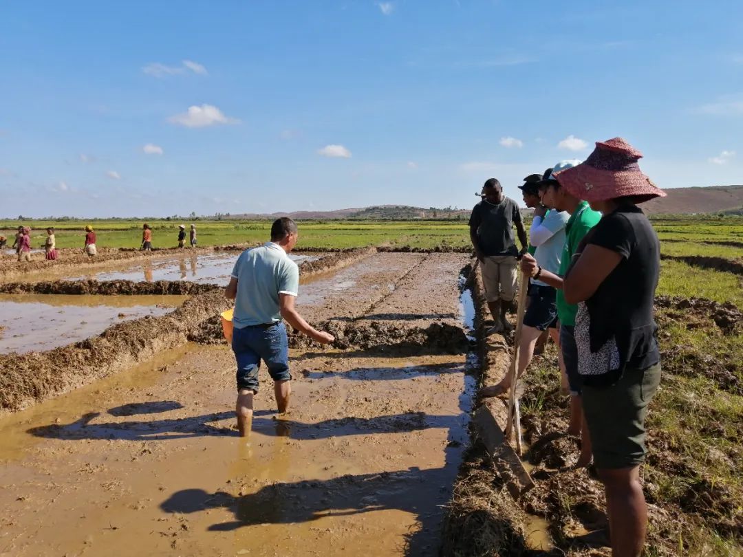 2019年,粮农组织-中国南南合作计划派遣的中国专家在马达加斯加指导培训杂交水稻播种。©FAO