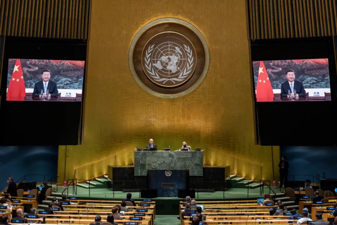 2020年9月22日,中华人民共和国国家主席习近平在联大视频讲话。©UN