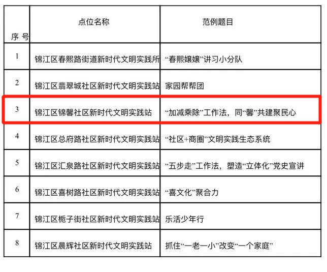 近日,2021年成都市新时代文明实践精品范例评选活动榜单出炉,共评选出115个成都市新时代文明实践精品范例。在成都市锦江区8个上榜范例中,柳江街道锦馨社区新时代文明实践站以“‘加减乘除’工作法 同‘馨’共建聚民心”为题成功获选年度精品范例。