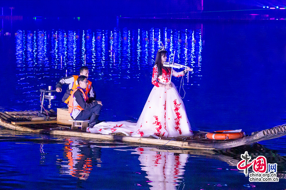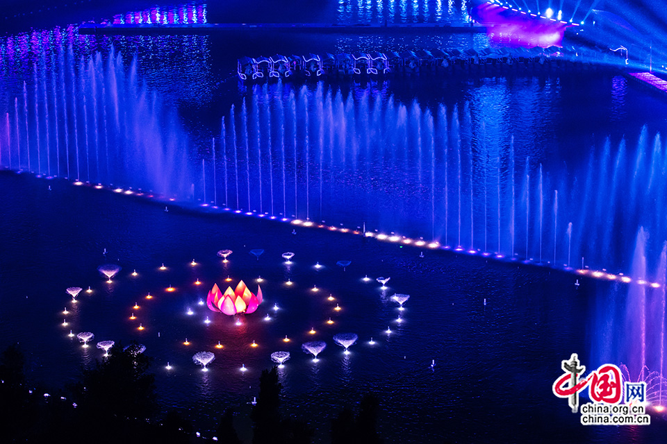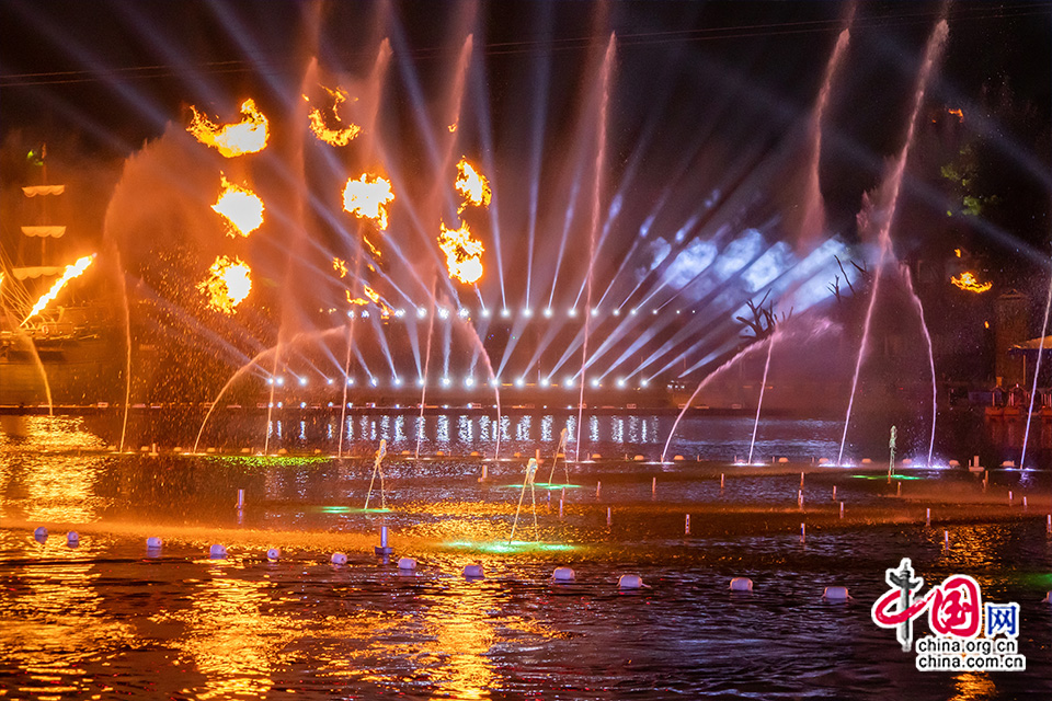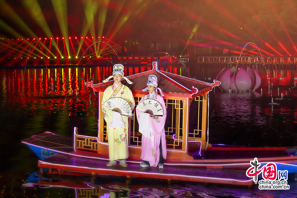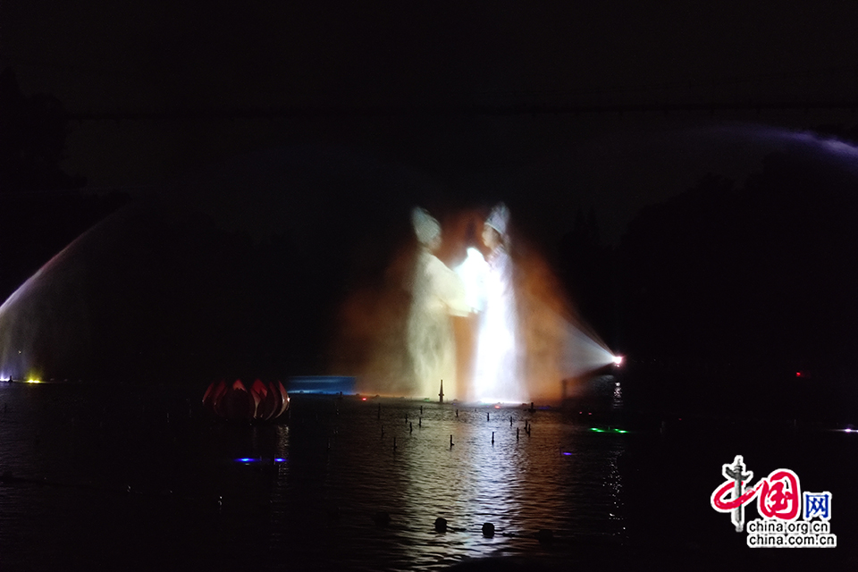 《蝶影》水舞灯光秀从创意、构思、基础建设、彩排等环节,共历时3个月有余精心打造,以脍炙人口的《梁祝》故事为主线,共分为烈焰、相遇、爱情、重生、化蝶五大篇章,分别通过水面演艺、灯光、水幕喷泉、投影、烟花、音乐等形式进行演绎,以其恢弘壮观的场景和表演,让游客在观看过程中,领悟到爱情的真谛,生活的美好,带领游客享受沉浸式的观看、互动体验。