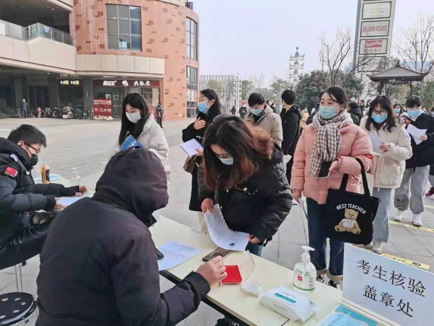 入站检查环节,考生须出示“苏康码”、首场考试开考前48小时内核酸检测阴性纸质或电子报告,并配合接受体温测量。“苏康码”为绿码,现场测量体温低于37.3℃,无干咳、乏力、咽痛、腹泻等相关症状,方可进入考点参加考试。