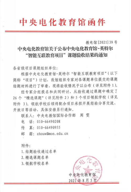 中央电化教育馆-英特尔 “智能互联教育项目”结题验收通过名单