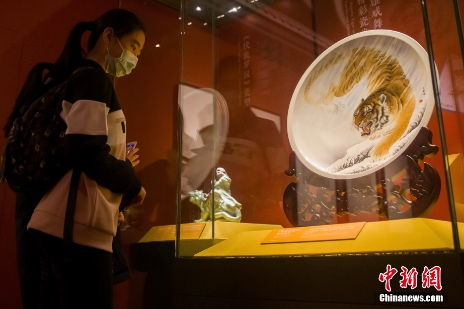 1月20日,北京,中国国家博物馆展出的“瑞虎佑安——二〇二二新春展”吸引市民参观。此次展览从信仰礼制、历史文化、艺术生活等方面系统展示与虎有关的历史、文化和节俗信仰。 中新社记者 易海菲 摄