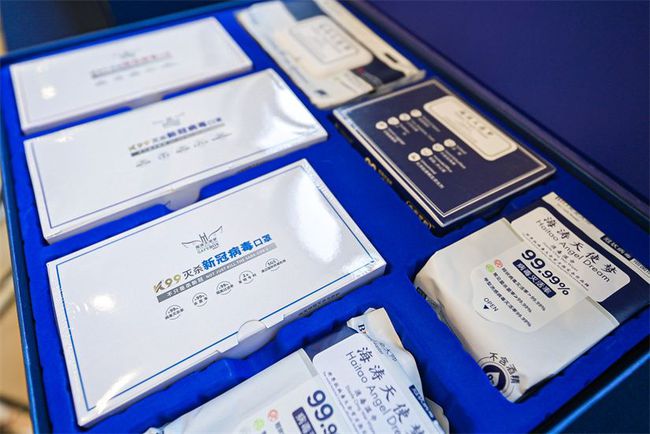 发布会现场,孙海涛系统介绍了海涛天使梦抗疫新产品。海涛天使梦研制的口罩,湿巾,校服都采用了抗病毒技术,这项技术经医学科学院、英格尔、SGS、广微、微谱及加拿大阿尔伯塔大学等国内外多家权威机构检测,对各类病毒和细菌均可灭活,具有“广谱、高效、速效、持久、超高安全性、耐洗涤”等特性,病毒灭活率可达到99%--99.999%,可有效适用于“杀灭新冠病毒SARS-COV-2、冠状病毒HCov-229E、GX_P2V,SARS病毒、流感病毒,艾滋病毒、手足口病、腺病毒、诺如病毒、脊髓灰质炎病毒、 白色链珠菌、铜绿假单胞菌、金葡球菌、肺炎克雷伯氏菌、大肠杆菌等”。