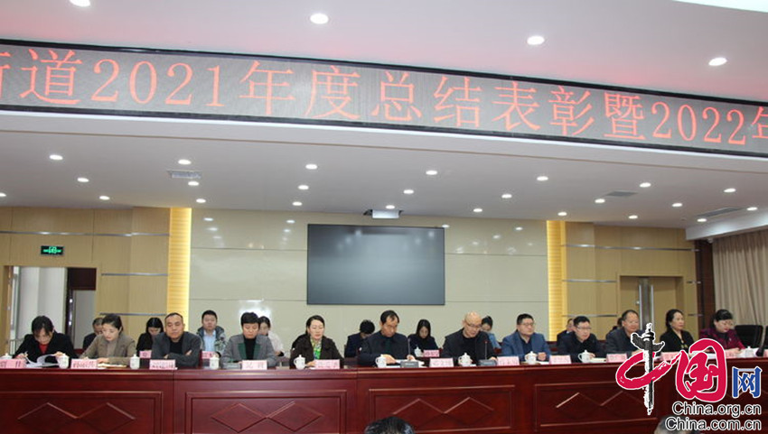 会议由街道党工委副书记、办事处主任孙玉勇主持。党工委副书记晁莉宣读《关于表彰2021年度先进集体和先进个人的决定》。党工委书记邓文博作了《逐梦新征程,奋斗创未来,全面开启丹阳建设新篇章》重要讲话。