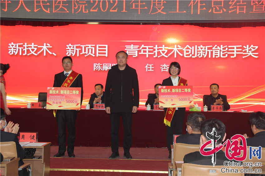 会议首先由专职党委副书记安胜宣读表彰决定,与会领导分别对2021年度各类先进集体和先进个人进行颁奖。接着,李华伟在工作报告中对2021年的工作进行了全面回顾,总结了成绩,同时也指明了存在的问题,并对2022年的工作任务进行了部署和安排。田磊在讲讲话中代表区卫生健康局对医院工作提出了要求和希望。