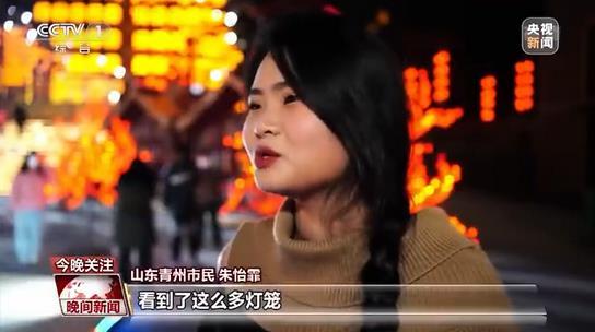 山东青州市民 朱怡霏:看到了这么多灯笼,瞬间感觉年味特别足。