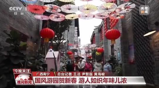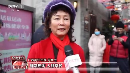 广西南宁市民 何女士:非常热闹,人非常多,非常有节日气氛。你看这个伞就比较独特,我还没见过,非常漂亮,一看见就想在这儿留个影。三街两巷就是我们南宁的一个缩影。