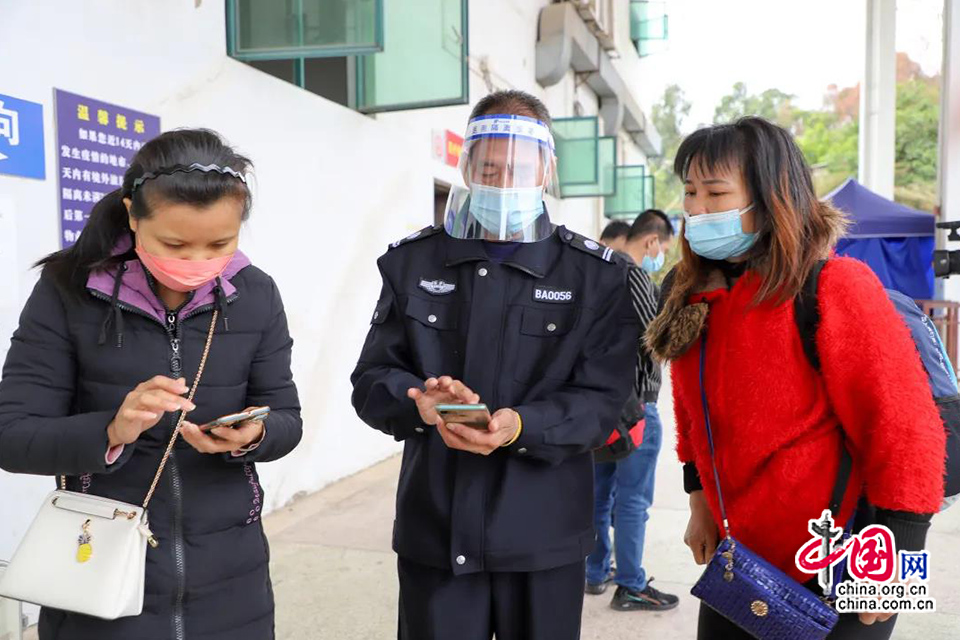 “请终点站是在桥头汽车站下车的乘客,请打开自己的粤康码、行程卡,截图下来,扫一下‘粤核酸5’小程序,准备填资料做核酸。”车站工作人员说。