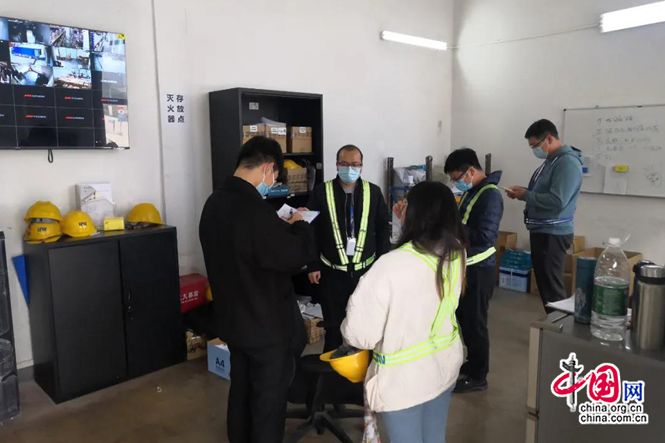 在义沙村一危化品生产企业,检查组通过查阅台账、实地检查等方式对该企业的人员返岗情况、岗前培训、应急预案、设施维保、消防器材等进行检查,要求企业加强隐患自查,进一步完善应急预案,确保企业复工复产工作安全、有序开展。