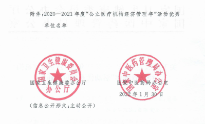 此次国家卫生健康委、国家中医药管理局评选出13个省级卫生健康委、50个省级以下地方单位、19个国家卫生健康委和国家中医药局管理预算管理医院为优秀单位,并进行了通报表扬。