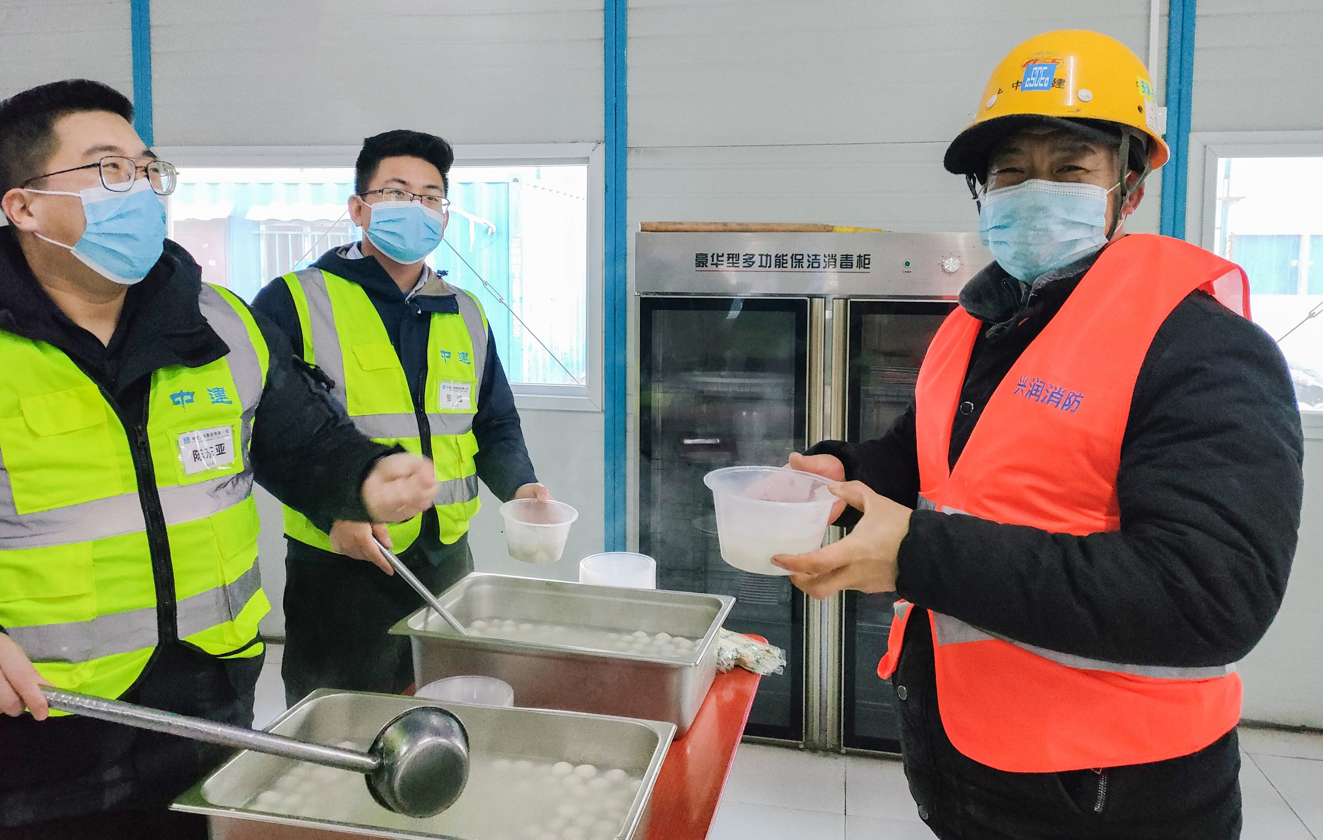 2月15日,由中建三局承建的新能源汽车检验中心(天津)建设项目开展“元宵煮汤圆、情暖农民工”活动,项目管理团队与一线工友一同煮元宵,对大家在节日期间为了工程建设,坚守在施工现场表示感谢,祝福大家能过一个开心的元宵节。同时也希望所有工友与时间赛跑,抓安全、控制量、保进度,保证施工节点顺利完成。