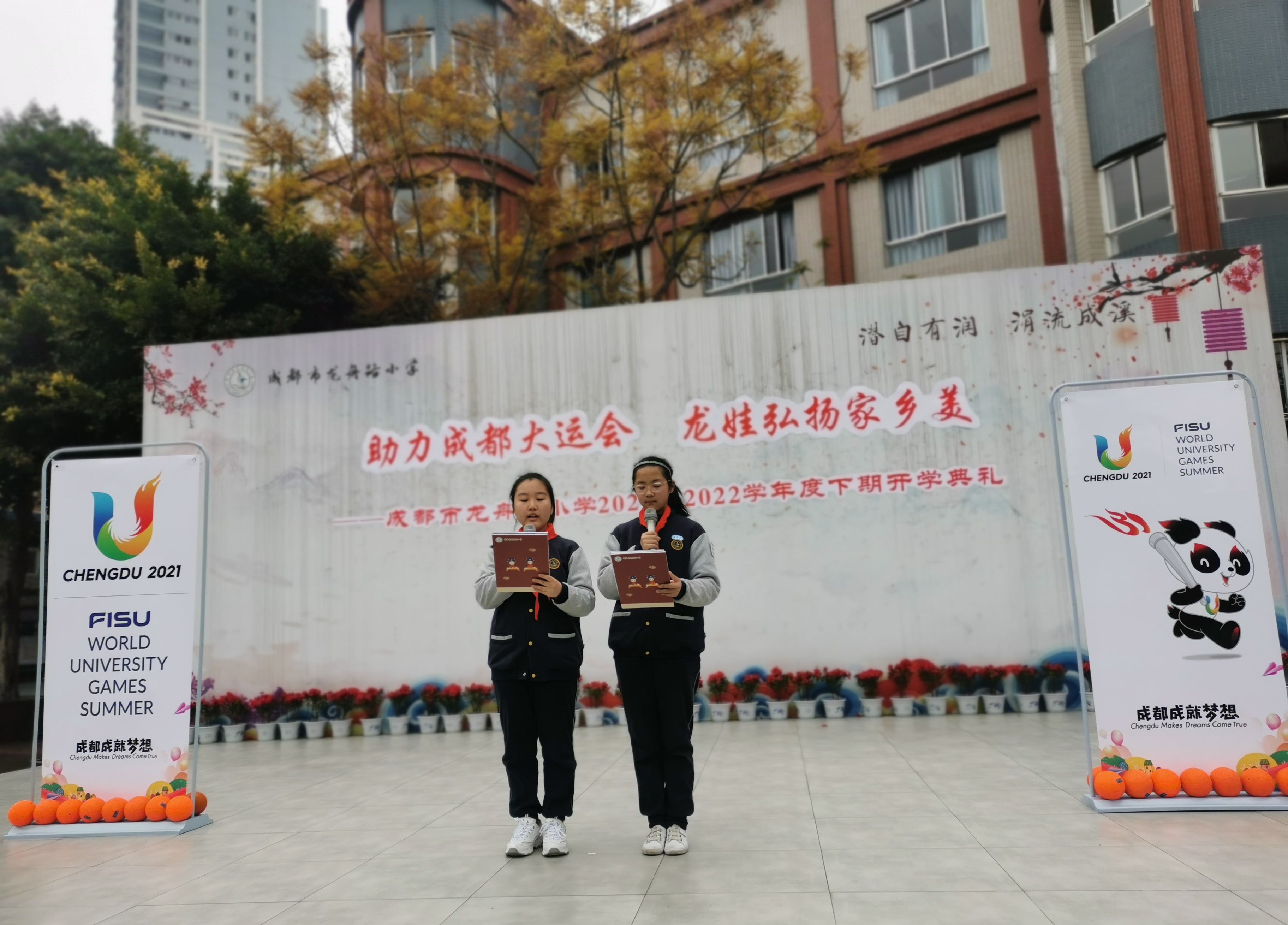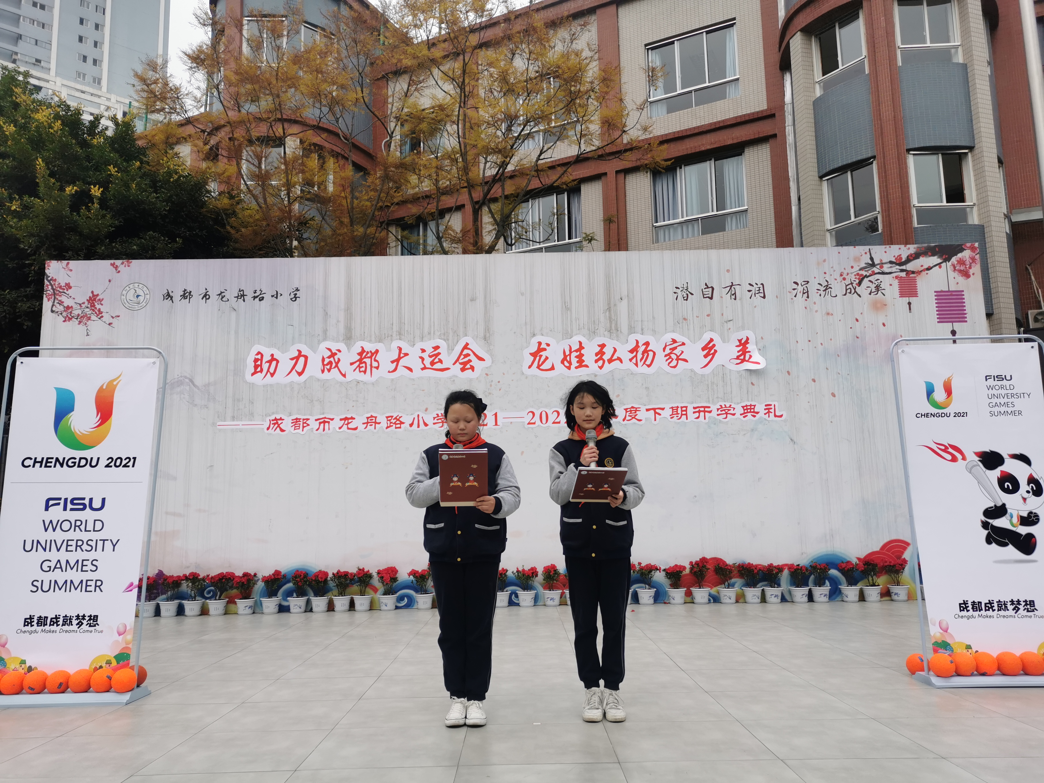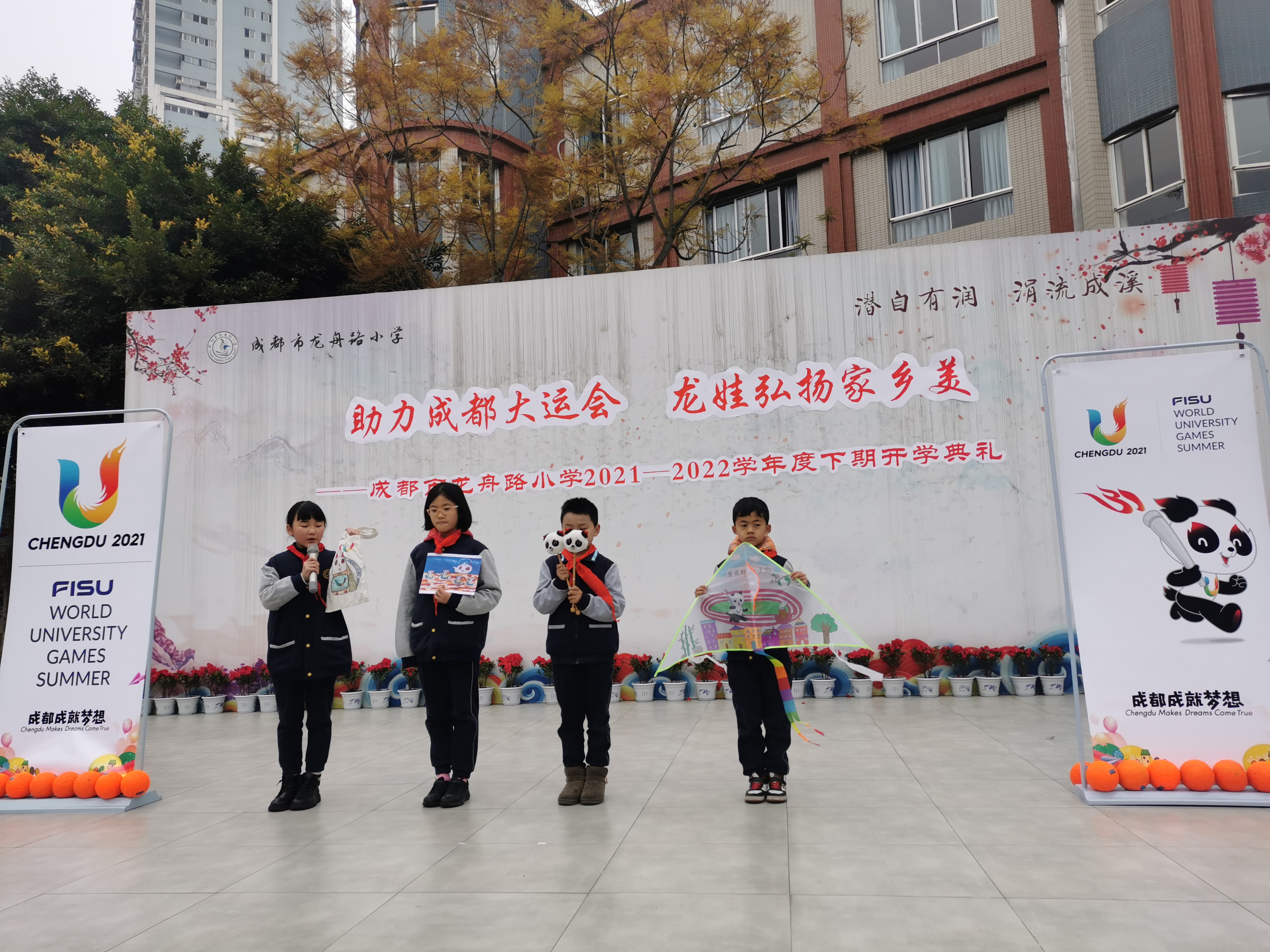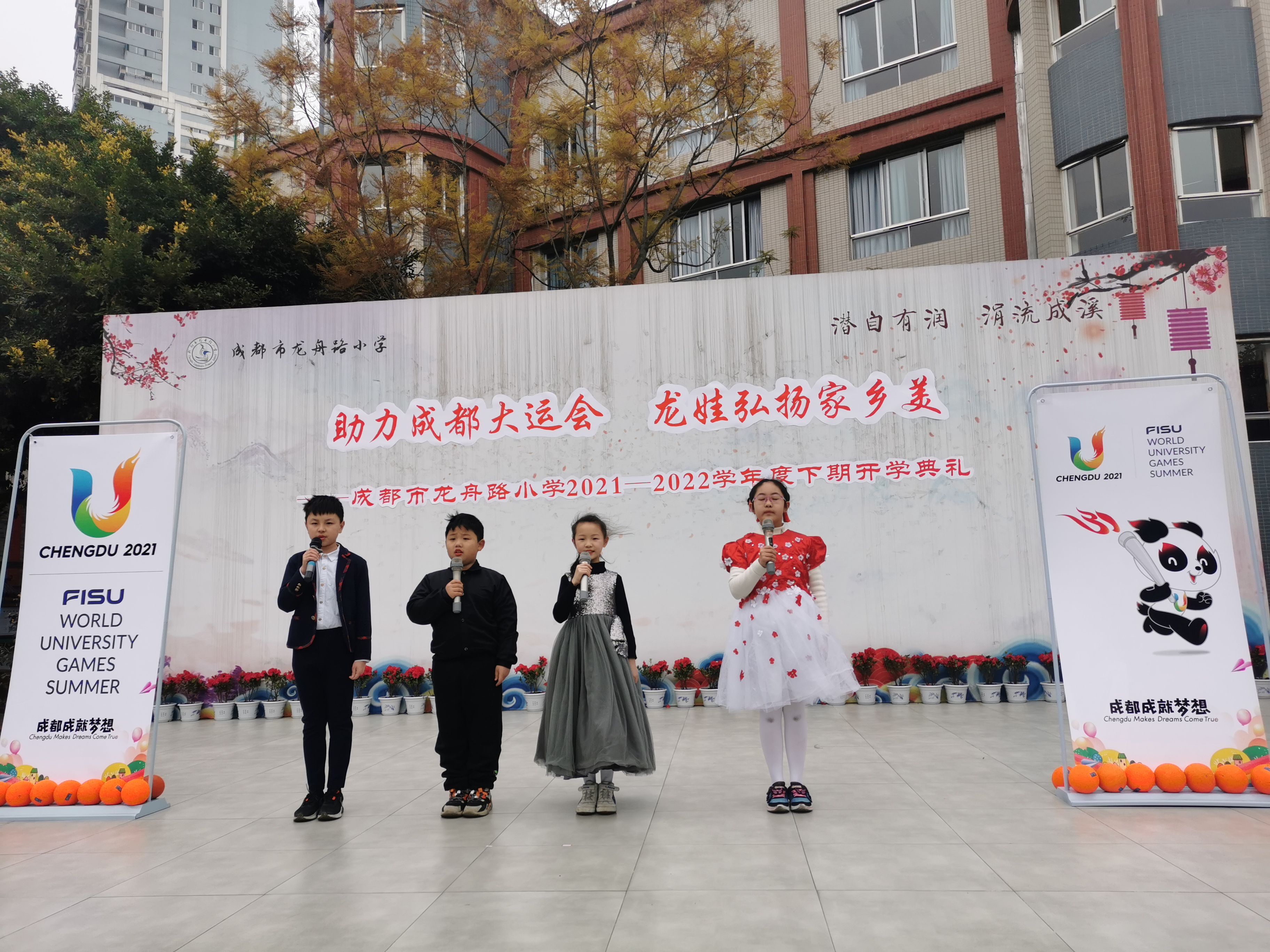 热闹的大运谱成了一首清脆的哨声,邀请希望的光亮降落锦官城。2月17日,成都市龙舟路小学举行“助力成都大运会 龙娃弘扬家乡美”2022年春季开学典礼。