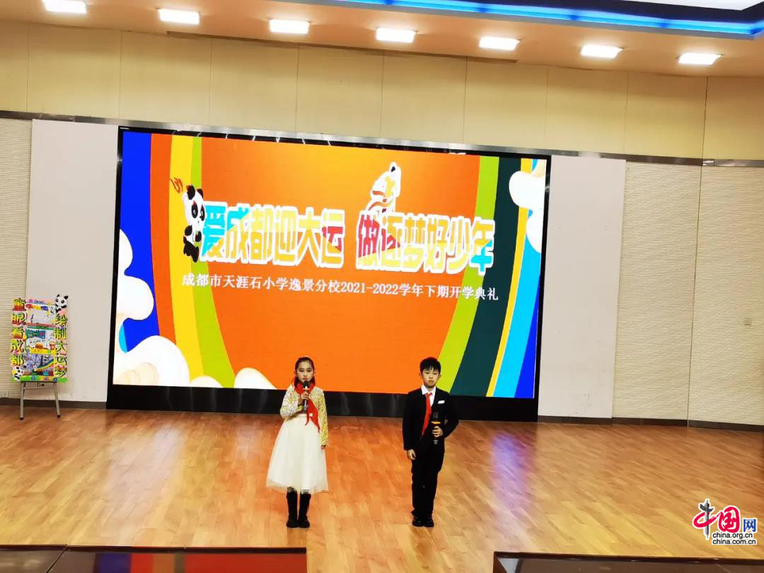 冬去春来,万物复苏,在柳枝吐翠,草长莺飞的时节,孩子们带着对美好未来的无限憧憬,共同开启新学期的第一幕。2月17日早上,成都市天涯石小学逸景分校的全体师生齐聚校园,隆重举行“爱成都迎大运,做逐梦好少年”新学期开学典礼。