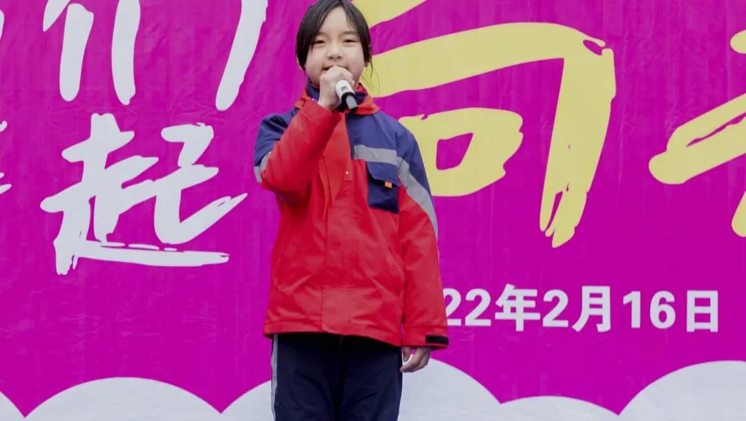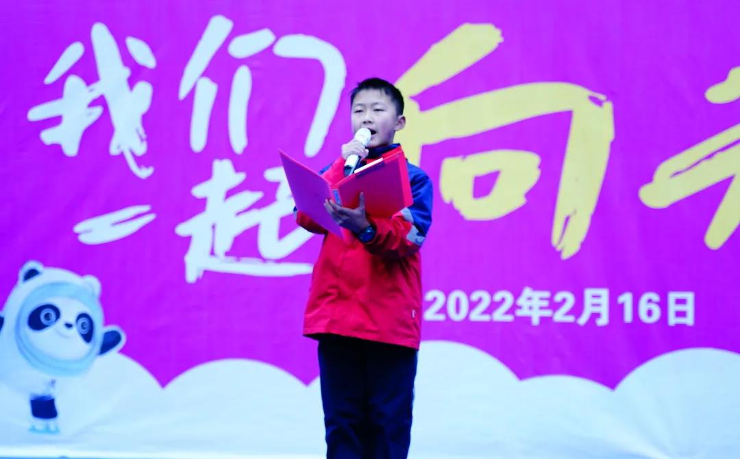 六年级一班学生蒲韬激情四射地讲述冬奥冠军苏翊鸣的故事。