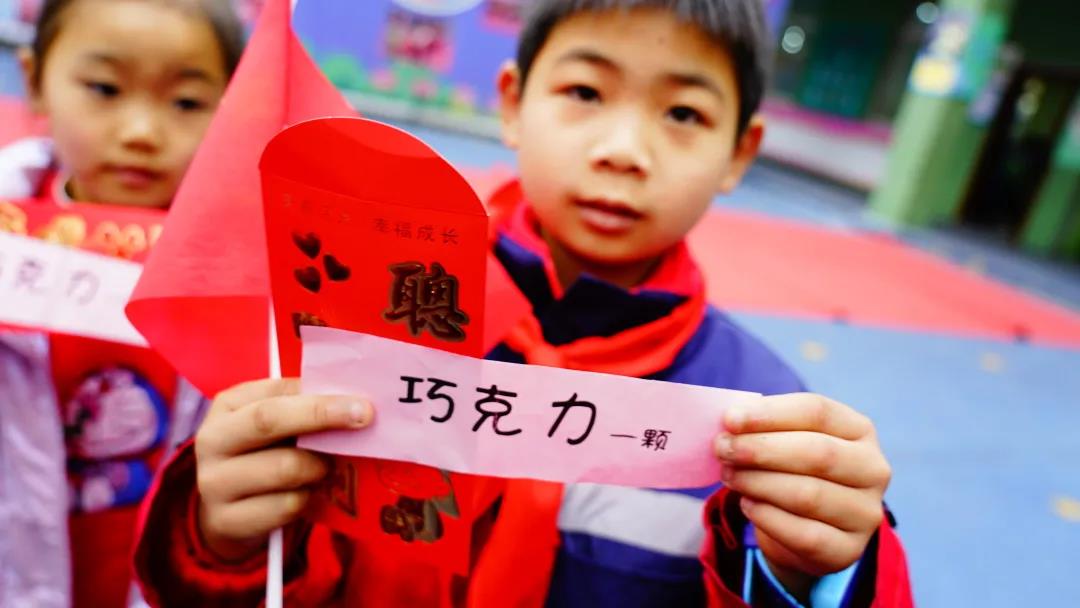 师生迎春接福,领取成长红包。红包有祝福,有心愿,还有巧克力。希望孩子们学习讲技“巧”,“克”服困难,努“力”拼搏!希望老师们生活有阳光,工作有激情!