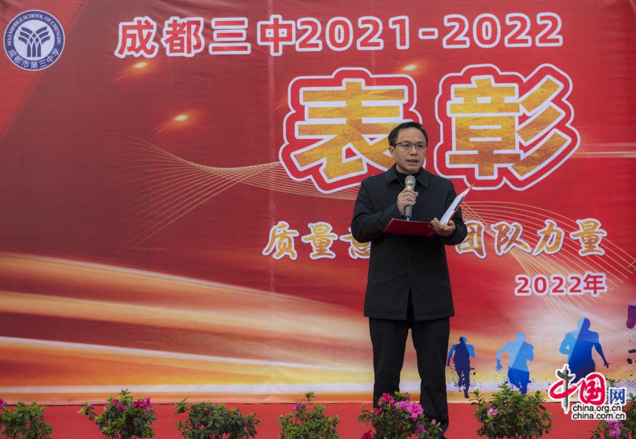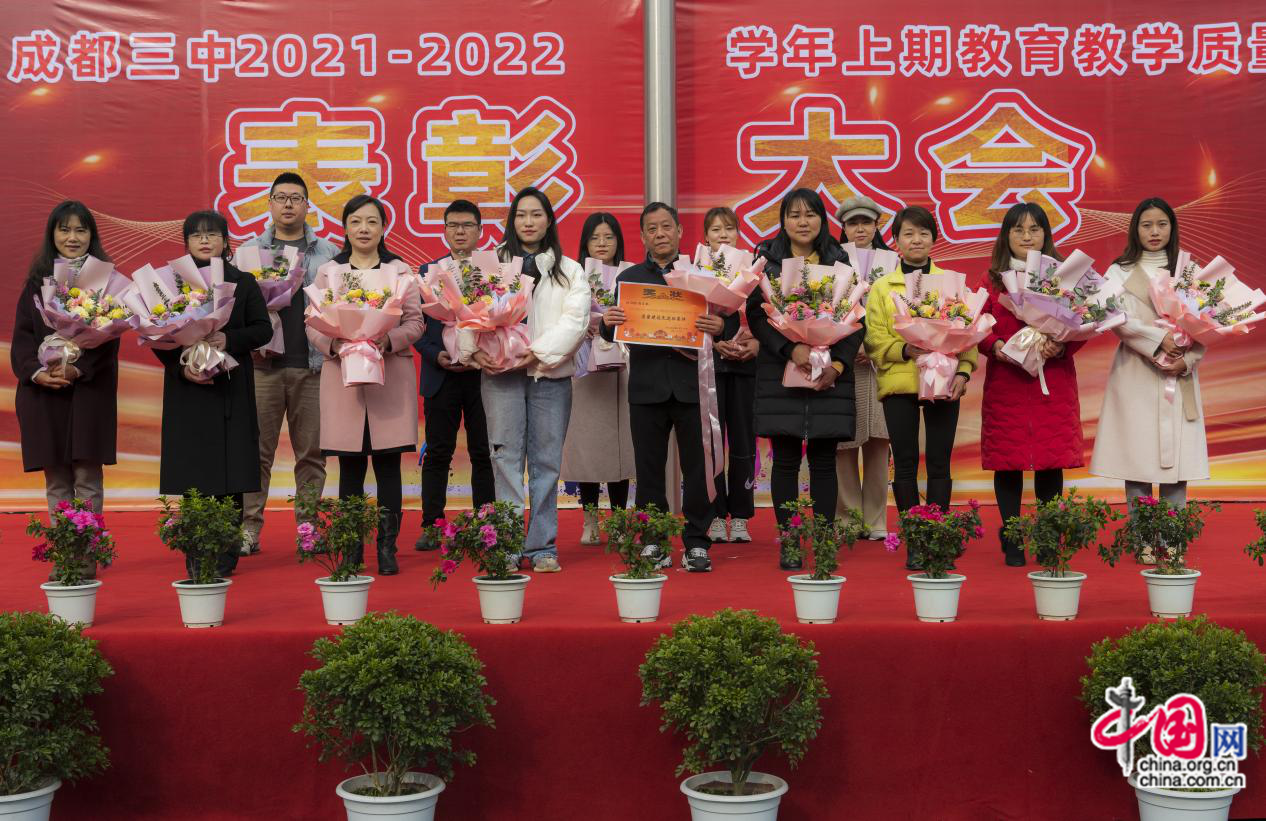 近年来,成都三中成为区域内变化最快、提升最多的学校,一项项工作、一摞摞成绩都离不开全校教职员工的辛勤付出,他们是见证者,也是参与者,更是创造者。成都市第三中学2021-2022学年度上期教育教学质量表彰大会终于圆满落幕,在“更加担当,更加团结,更加务实、更加努力、更加智慧”的精神引领下,在继承与创新的文化传统中,相信学校会有更多的优秀教师及团队走上这荣耀的领奖台,为学校创造新的教育教学质量神话。(李梅)