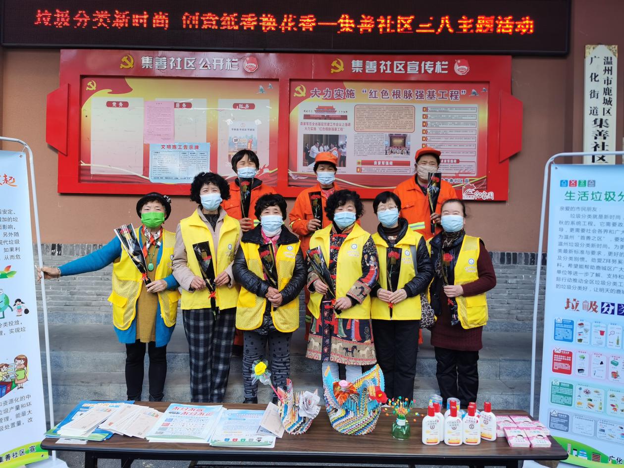 美丽家园从我做起,垃圾分类巾帼先行。近日,温州市鹿城区以“三八妇女节”为契机,组织妇女朋友开展垃圾分类宣传活动,在创建美好家园中切实发挥 “巾帼力量”,践行垃圾分类。