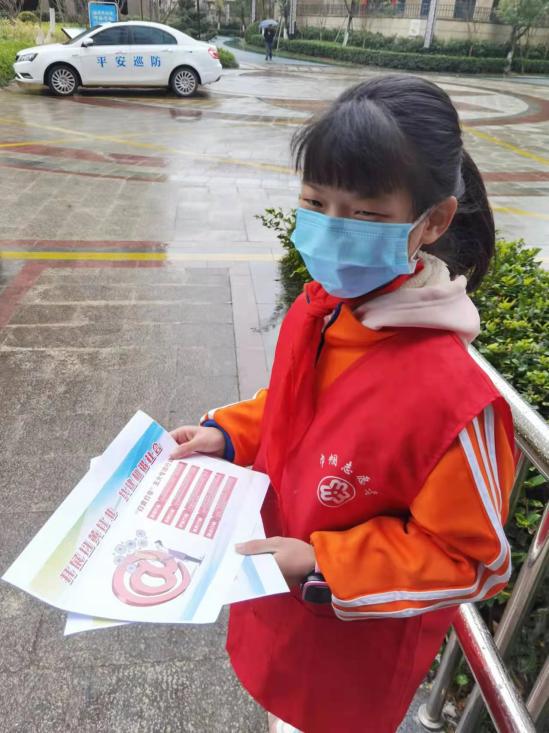 “叔叔,要文明使用网络,从正规渠道购买图书,我们买书要买正版的噢。”洋溪街道扫黄打非护苗小分队队长董潇予认真地宣传“扫黄打非”相关知识。