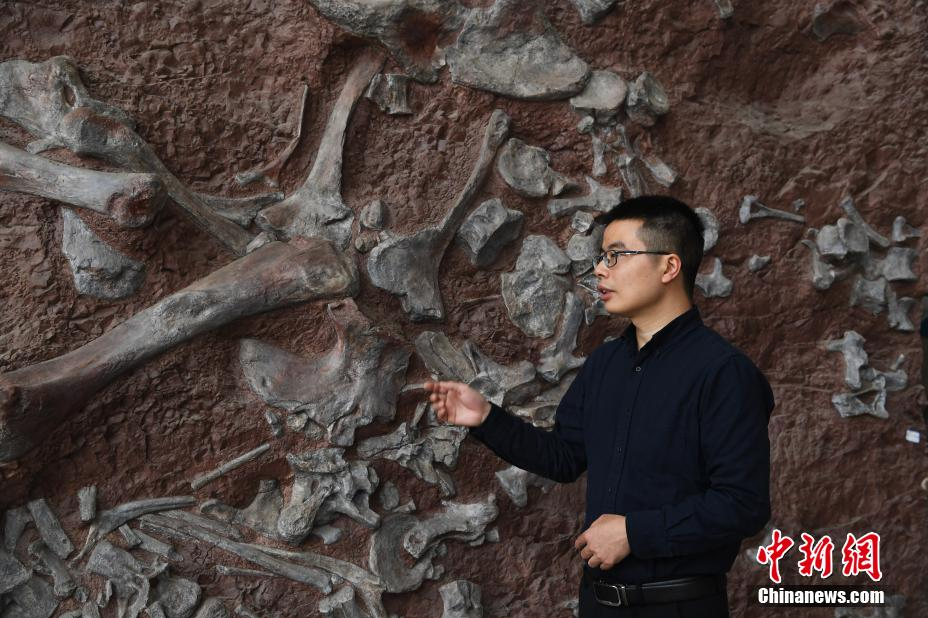 图为重庆市地勘局208地质遗迹保护研究院正高级工程师代辉介绍元始巴山龙化石的情况。 陈超 摄
