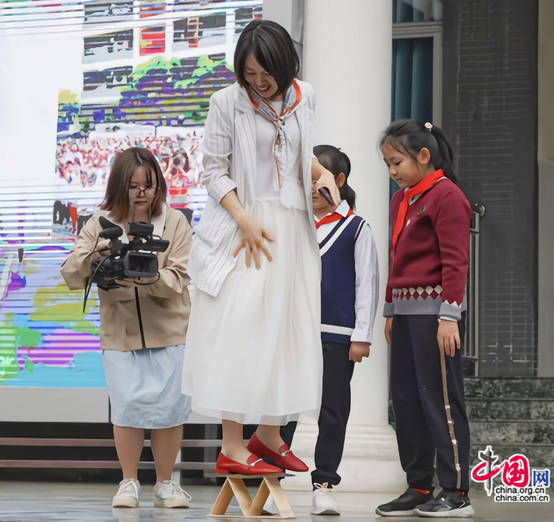 四年级同学用牙签搭出的桥不仅好看,而且坚固。一二年级弟弟妹妹踩上去毫无压力,五六年级哥哥姐姐站上去也没有问题,最后老师站上去,桥也没有倒塌,把现场气氛烘托到高潮。