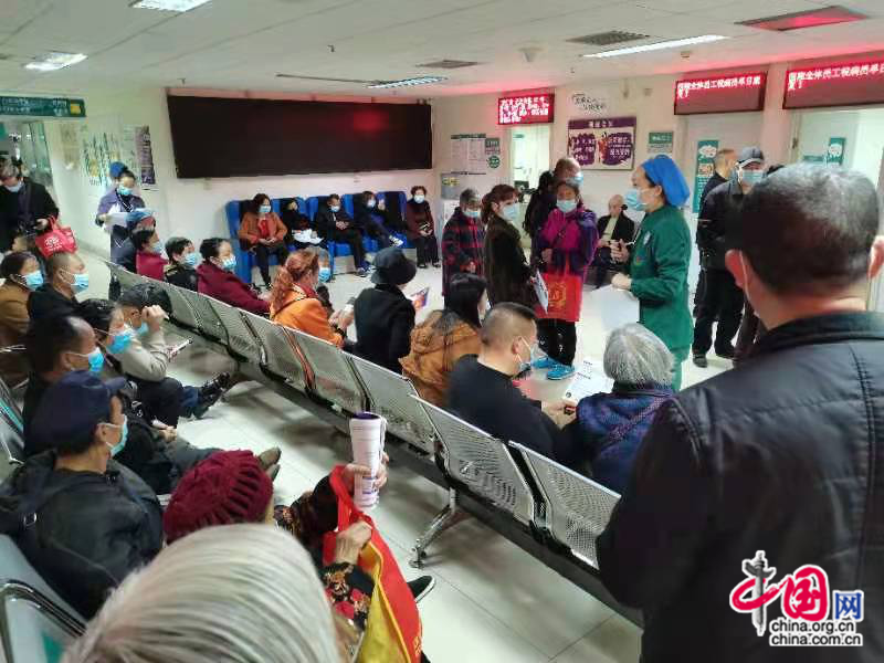 线上义诊和科普授课结束后,科室还组织开展了线下健康宣教活动,为病房里的病员及陪伴讲解了《透析患者的饮食管理》。除此之外,护士长陈燕还带领护理团队来到门诊大楼,为候诊的患者及家属宣讲了有关肾脏疾病防治及护理知识。