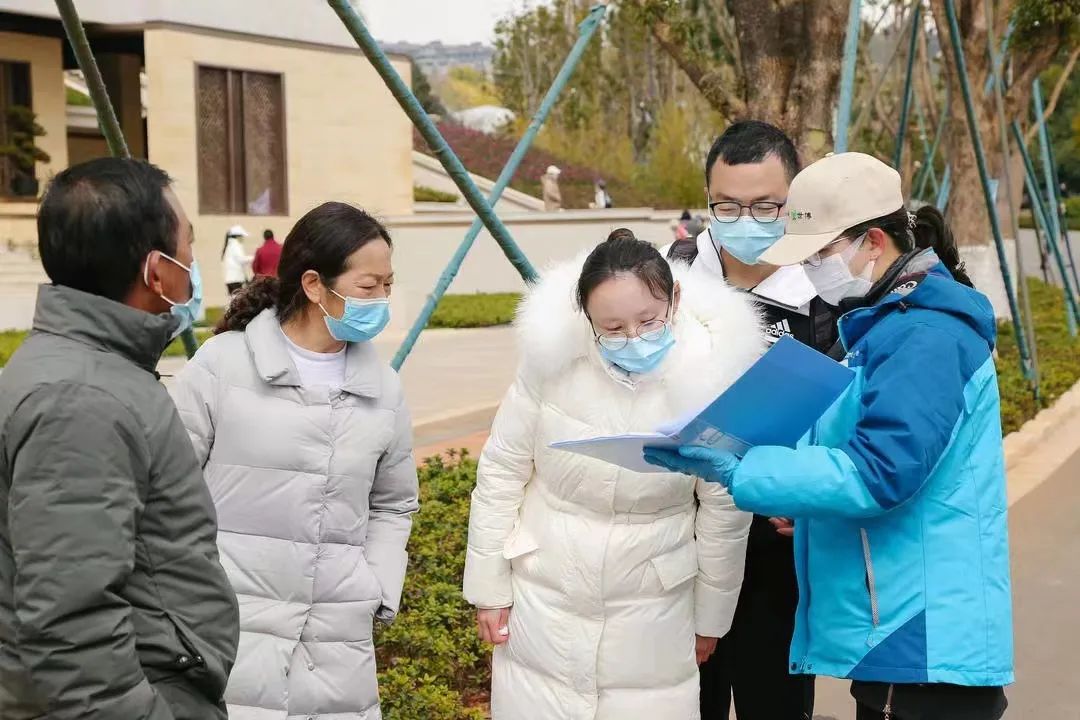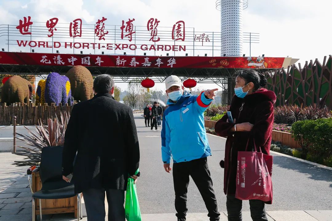 昆明世博园工作人员宣传防疫知识