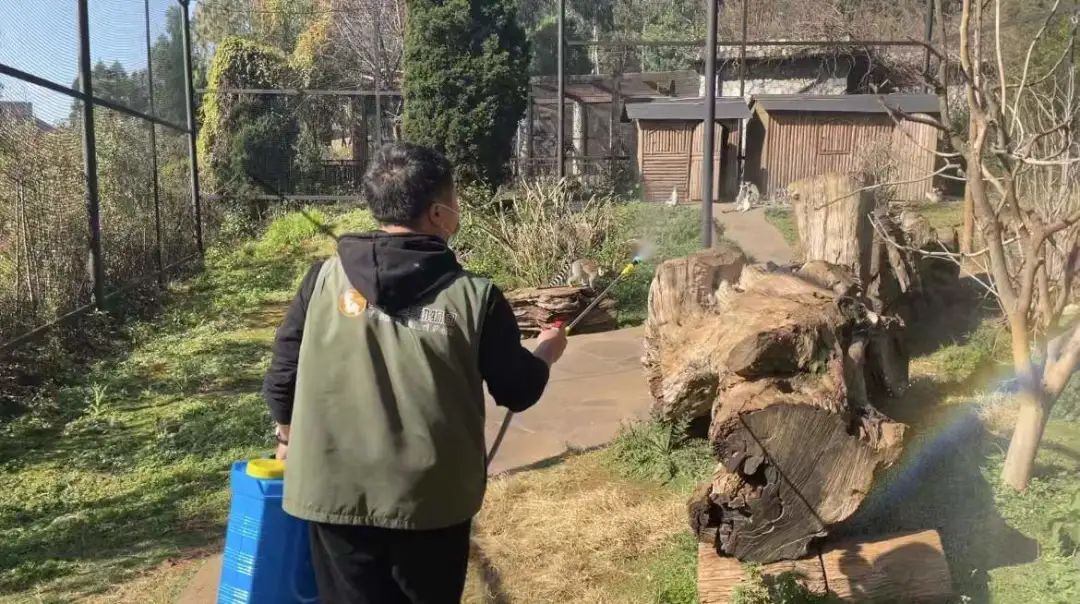 云南野生动物园职工对园区进行消杀