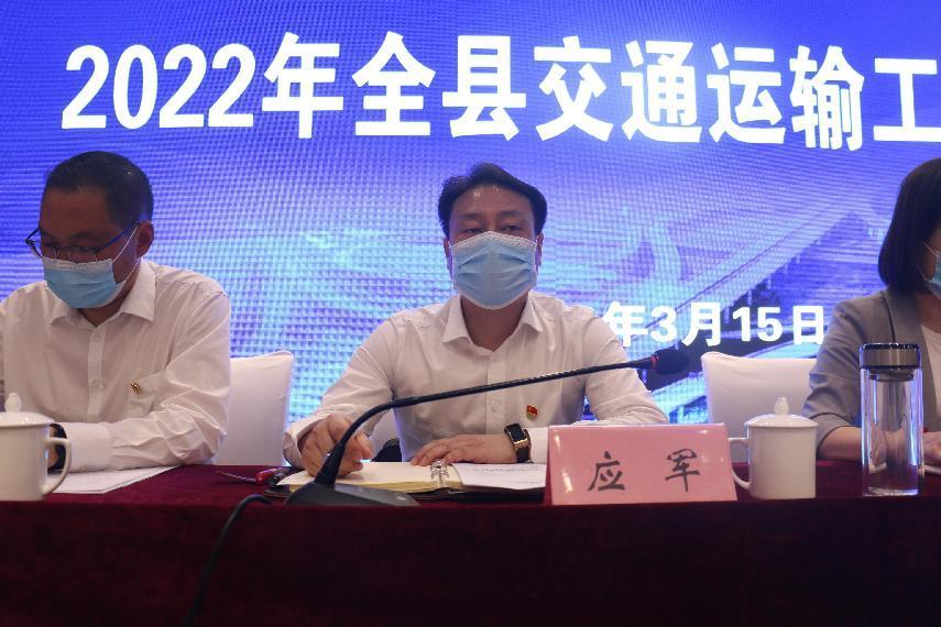 县交通运输局党组书记、局长应军对2021年工作进行总结,同时对2022年工作进行详细安排部署。明确了2022年主要目标:确保完成固定资产投资11亿元(市下达任务2.9亿元、县下达任务8亿元),其中:高速公路1个8亿元;普通公路建设、危桥改造0.61亿元,水运工程建设5个2.3134亿元。他指出,要切实把思想和行动统一到县委县政府对当前形势的重大判断上来,既要牢牢把握发展机遇、奋发有为,更要信心百倍地直面困难、迎接挑战。