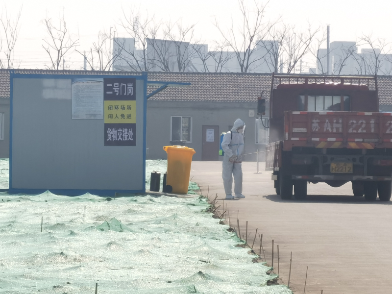 “天诗公司的提货车即将进仓提货,请消杀专员至二号门岗进行整车消杀,同时请两位师傅做好货物出仓准备。”登记完车辆和提货信息,在1号门岗值守的雷阳用对讲机通知仓内的3名闭环人员各司其职,尽快出货。