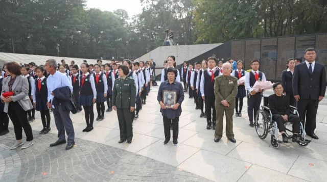 2019年9月29日,烈士家属代表参加认亲仪式。新华社记者杨青摄