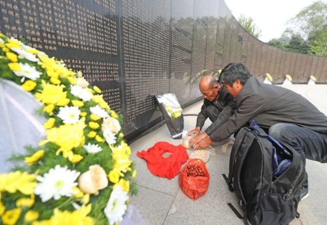 2014年3月28日,志愿军老兵向志愿军烈士鞠躬。新华社记者潘昱龙摄