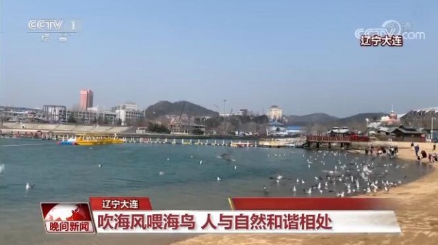 在辽宁大连,不少家长带着孩子来到海滩,吹吹海风,一起喂食海鸟,感受人与自然的和谐美景。