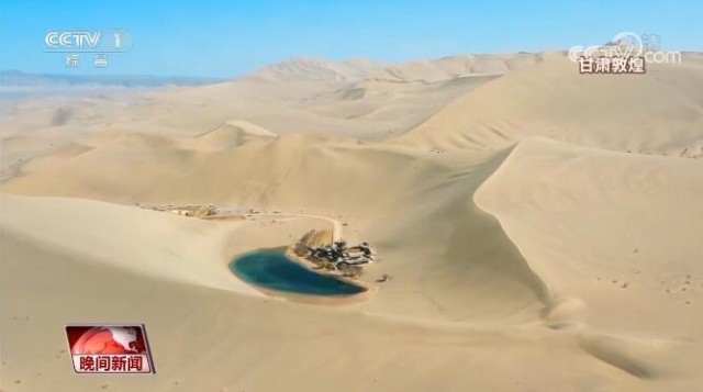 甘肃敦煌:踏青鸣沙山 月牙泉映杏花美