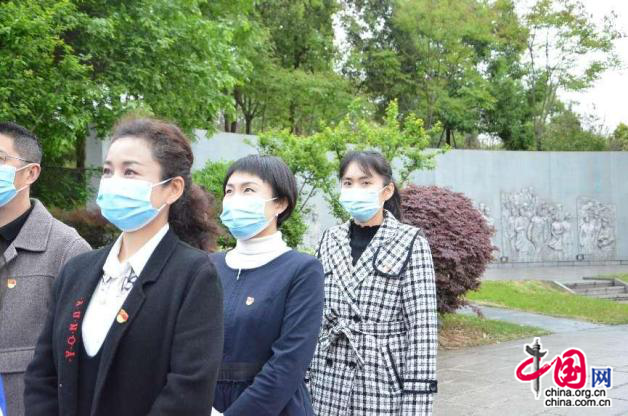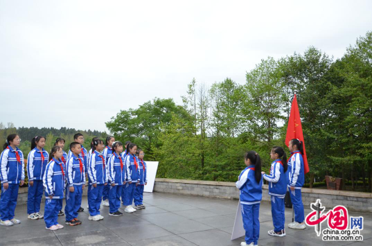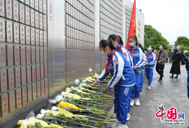 上午10时许,党员老师和少先队员代表来到苍松翠柏的纪念碑广场前,肃立在革命烈士纪念碑前,唱响了《中华人民共和国国歌》和《中国少先先锋队队歌》,大家深深地默哀、鞠躬,表达对革命烈士的崇高敬意和无限哀思。