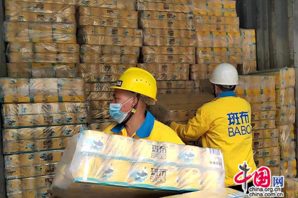 4月10日,位于四川省青神县西龙镇的斑布健康竹产业园内,4辆满载着斑布本色竹浆纸的的物资运送车队,在工厂仓库外依次排开,准备奔赴上海抗疫一线。这批准备捐赠的物资由四川环龙新材料有限公司生产,价值500万元。