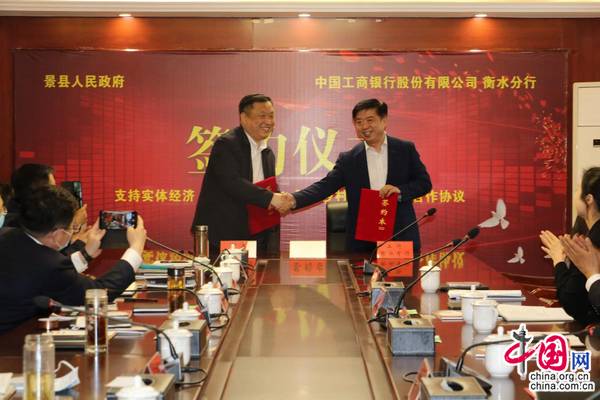 近日,工行河北衡水分行与景县人民政府签署《支持实体经济,助力智慧城市 服务乡村振兴战略合作协议》,并与县党政机关主要负责人开展座谈。