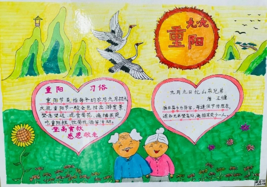 重阳节在历史发展演变中杂糅多种民俗为一体,承载了丰富的文化内涵。在民俗观念中“九”在数字中是最大数,有长久长寿的含义,寄托着人们对老人健康长寿的祝福。