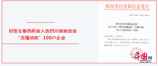 此次成功入选“贡嘎培优”企业名单是对好医生集团多年在川高质量快速发展的一种认可,更是一种鞭策。未来,企业将在技术创新驱动发展的理念指引下,继续加大自主创新力度,提升产品品质、服务和产业规模等优势,成为推动四川经济高质量发展的生力军,为推动中医药事业的发展和造福人类健康做出新的更大的贡献。(唐梦玲、袁瑛)