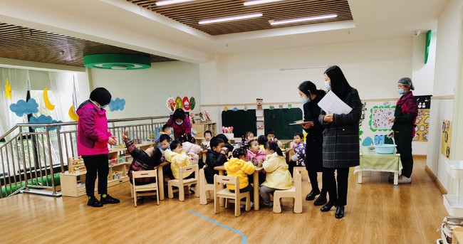 迎接评估组当天,由成都市五位专家组成的评审小组通过看(园容园貌、设施设备、半日活动、档案资料)、听(汇报、座谈)、问(个别访谈)、评(评分、评级)等形式对园区进行督导、评定工作。评审组从办园条件及研培机制、安全卫生及人员配备、内部管理及办园效益、保育教育、儿童发展及师德师风五个方面对园区进行了全面而细致的评估考察。