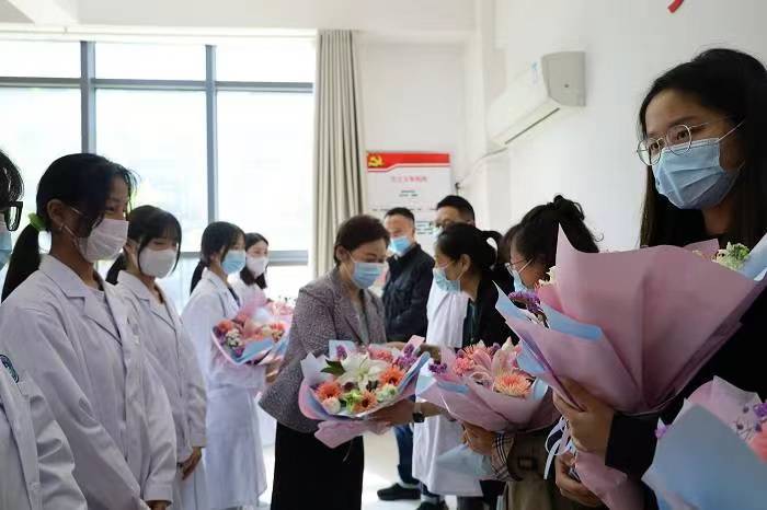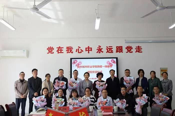 白衣战士载誉回校,最美逆行光荣凯旋。4月21日上午,滁州城市职业学院举行防疫一线教师返校欢迎仪式,来自医学院、护理学院的12名防疫一线教师结束隔离顺利返校。党委书记张志华出席欢迎仪式并讲话,校长汪上,党委副书记牛春雨,党委委员、副校长吴惠珍,党委委员、办公室主任、宣传统战部部长陈通等校领导参加欢迎仪式,仪式由吴惠珍主持。