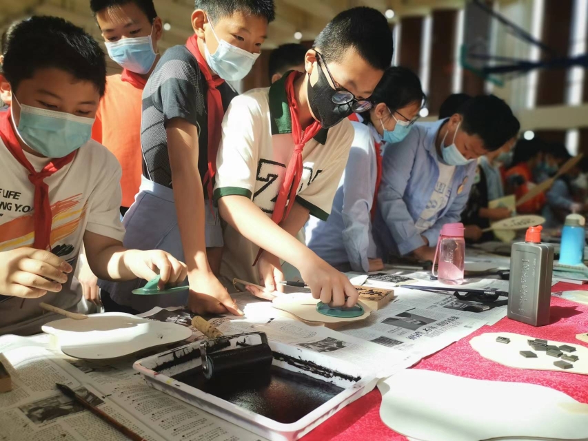 拓版印刷体验课程,将知识趣味与历史文化相结合,吸引了孩子们的目光,大家在老师的指导下,纷纷加入了拓印的体验活动中,亲自尝试活字拓印和水拓画的制作。