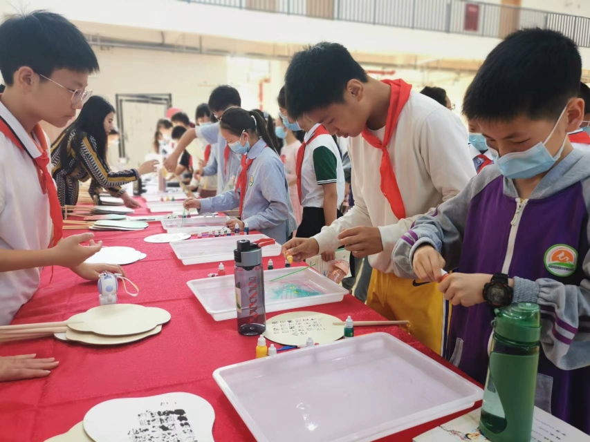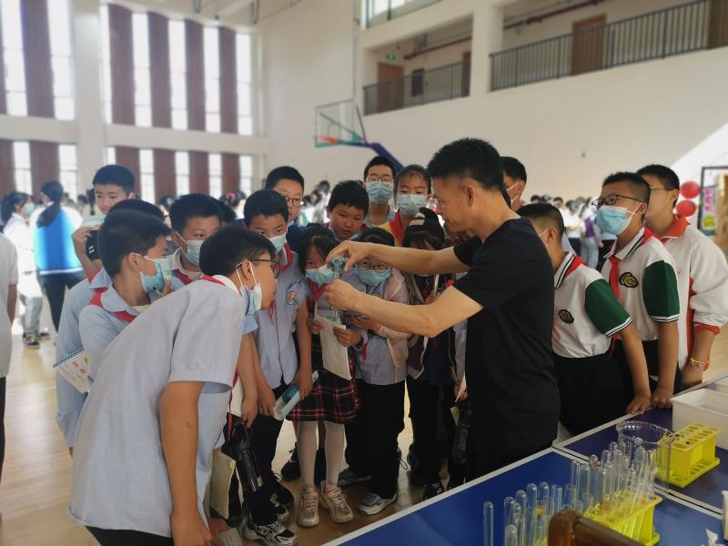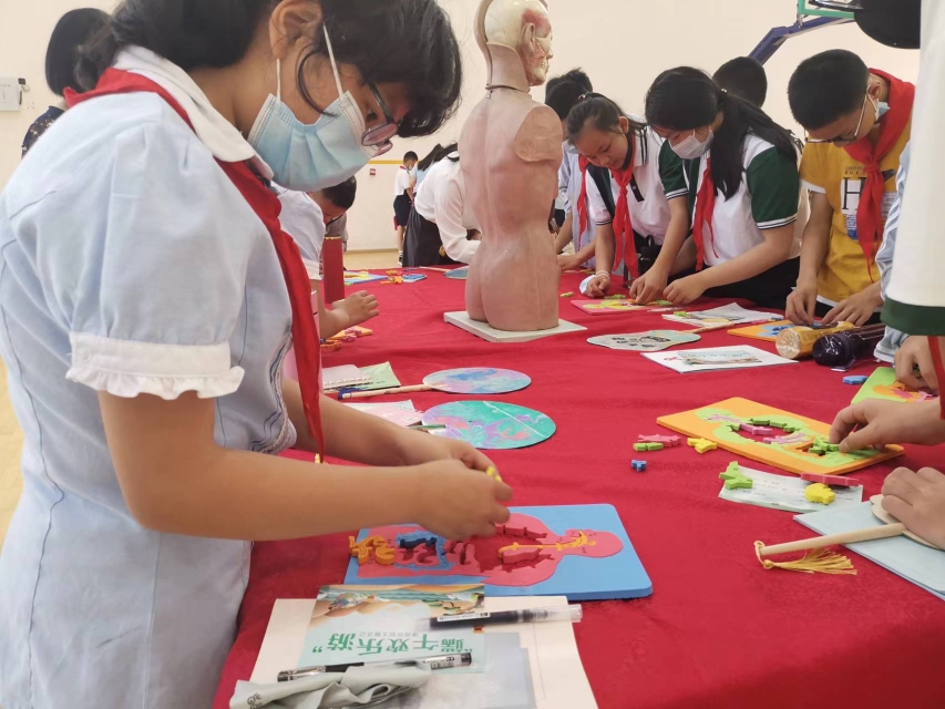除了化学实验、拓印体验活动之外,锦江区教育科学研究院附属中学还为孩子们准备了人体消化系统拼图、物理科普衔接实验、端午香包制作、运动划船机体验等多种活动,激发大家探索知识的兴趣,培养动手实践能力。