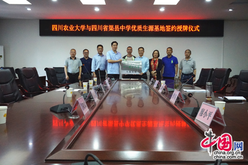 5月5日,四川农业大学—四川省渠县中学“优质生源基地”签约授牌仪式在四川省渠县中学紫荆楼小会议室举行。四川农业大学招生就业处处长杜彬,招生就业处副处长、招生办公室主任王文龙,达州市招生考试院副院长顾林,渠县招生考试办公室主任罗建华、副主任鲁晓斌和四川省渠县中学党委书记、校长刘高明,副校长敬永香,党委委员、副校长曹阳,党委委员、副校长张厅剑,党委委员、工会主席廖小平出席仪式。该校行政办、教务处、教科室等处室干部和高三年级班主任参加仪式。仪式由罗建华主持。