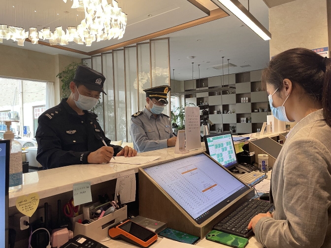 检查中,民警依托江苏省市场监控信息平台,通过实地查看、现场询问、查询资料记录等方式,重点对旅馆业特种行业许可证办理、视频监控设备安装使用、从业人员管理、安全防范等规章制度落实以及防火防盗设施安装等情况进行检查。针对检查中发现的问题,向经营业主提出了具体的整改意见,并责令被检查旅馆限期整改到位,依法依规经营。