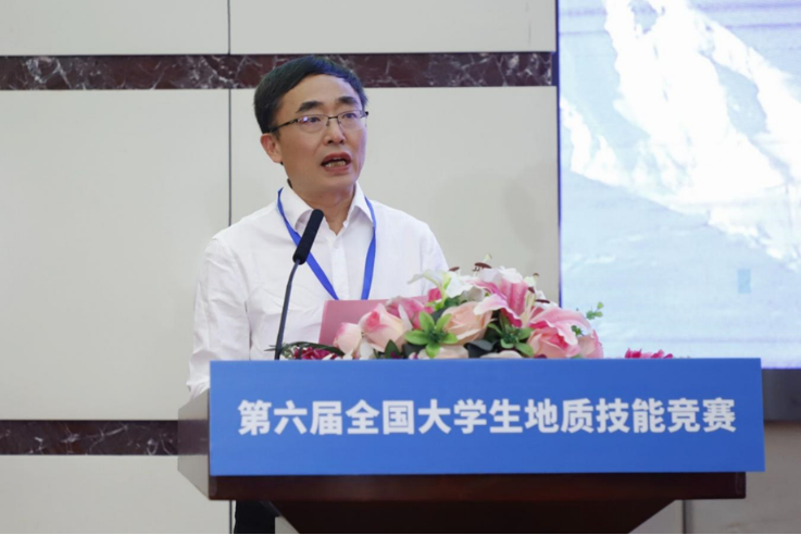 姜恩来代表中国高等教育学会向本次大赛成功举办表示热烈祝贺,他表示,党和国家对生态文明建设的重视程度前所未有,“美丽中国建设”对地质高等教育的需要比以往任何时候都更加迫切,对科学知识和卓越人才的渴求比以往任何时候都更加强烈。传统的地学高等教育正经历着前所未有的冲击与调整,要求地学高等教育树立“大地学”教育观,明确“大地学”人才观,按照 “大地学”模式去培养人才。他提到,全国大学生地质技能竞赛激发了广大学生学习和应用地学知识的积极性和主动性,提高了野外实践动手能力,提升了运用地学知识解决复杂地质问题的综合能力。他号召地质教育工作者以更高的站位、更宽的视野、更准的定位,全力办好高等地质教育,培养大批创新型、复合型、应用型人才,为建设创新型国家、实现中华民族伟大复兴的中国梦做出新的贡献。